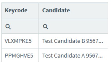 Keycode: the keycode the candidate used to enter the test